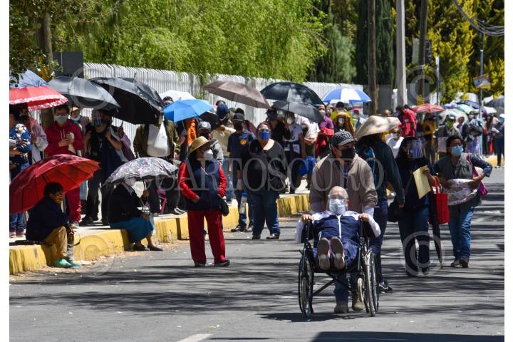 TOLUCA, ESTADO DE MÉXICO, 09MARZO2021.- Adultos Mayores de la zona norte del municipio de Toluca acudieron al Centro de Vacunación instalado en la Junta Local de Caminos, por varias horas esperaron para ser inmunizados con la primera dosis de la vacuna contra COVID-19 de Pfizer-BioNTech. FOTO: CRISANTA ESPINOSA AGUILAR / CUARTOSCURO.COM