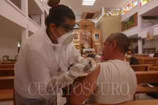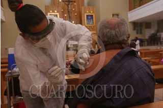 TLAQUEPAQUE, JALISCO, 09MARZO2021.- Continua la aplicación de la vacuna contra el COVID-19 en el municipio y este martes decenas de persona de la tercera edad se dieron cita en el Modulo del Cerro del Cuatro, ubicado en la Parroquia de Nuestra Señora del Refugio, donde desde temprana hora se comenzó con la inmunización, cabe señalar que en ya mencionado modulo hubo gran cantidad de personas por lo que se tuvo que entregar fichas para el día de mañana, para de esta manera llevar continuidad. FOTO: FERNANDO CARRANZA GARCIA / CUARTOSCURO.COM