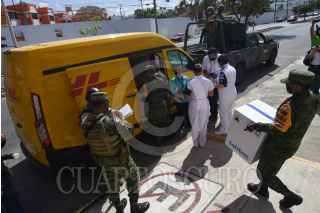 CAMPECHE, CAMPECHE, 10MARZO2021.- La Secretaría de la Defensa Nacional (SEDENA) entrego un lote de ocho cajas softbox con 34 mil 125 dosis de la farmacéutica Pfizer, para su refrigeración en el Centro Estatal de Transfusión Sanguínea (CETS). Este lote del biológico será destinado solo para los estados de Chiapas y Tabasco. A Chiapas le corresponde 22 mil 425 y para Tabasco 11 mil 700 dosis. FOTO: MICHAEL BALAM/CUARTOSCURO.COM