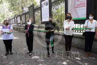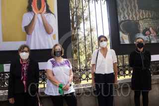 CIUDAD DE MÉXICO. 10MARZO2021.- Nadine Gasman, Belen Sánz y Vannesa Bohórquez López; encabezaron la inauguración de la Exposición Somos Una Somos Muchas, que se exhibe en las rejas del Bosque de Chapultepec. FOTO: VICTORIA VALTIERRA/CUARTOSCURO.COM