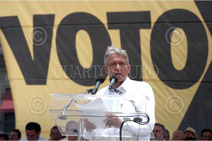 MÉXICO D.F. 30JULIO20006 Andrés Manuel López Obrador, candidato a la presiedencia de la coalición Por el Bien de Todos, llevo acabo el tercer mitin Informativo en el Zócalo capitalino. FOTO: Guillermo Perea/CUARTOSCURO.COM