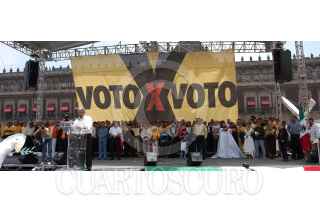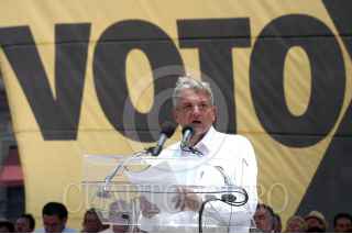 MÉXICO D.F. 30JULIO20006 Andrés Manuel López Obrador, candidato a la presiedencia de la coalición Por el Bien de Todos, llevo acabo el tercer mitin Informativo en el Zócalo capitalino. FOTO: Guillermo Perea/CUARTOSCURO.COM