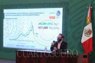 CIUDAD DE MÉXICO, 11MARZO2021.- Ricardo Cortés Alcalá, director general de Promoción De la Salud y Hugo López-Gatell, subsecretario de Prevención y Promoción de la Salud, de manera virtual, encabezaron el informe diario sobre la pandemia del Covid-19, en Palacio Nacional, esto aún año de que la Organización Mundial de la Salud, decorara al coronavirus como una pandemia. FOTO: ROGELIO MORALES /CUARTOSCURO.COM