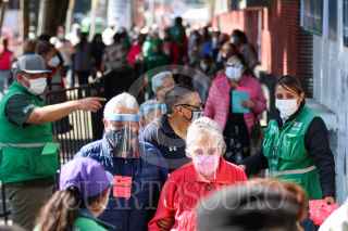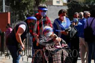 CIUDAD DE MÉXICO, 12MARZO2021.- Adultos mayores continúan acudiendo a la Escuela Superior de Maestros, a las afueras de metro Normal, para ser inmunizados contra la Covid-19. Las y los adultos serán atendidos en este módulo y en Campo Marte, pertenecientes a la alcaldía Miguel Hidalgo, hasta el 14 de marzo. FOTO: GALO CAÑAS/CUARTOSCURO.COM