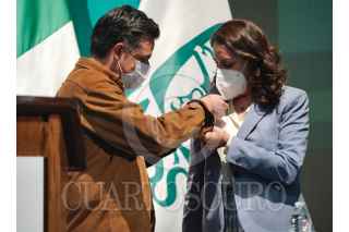 QUERÉTARO, QUERÉTARO, 12MARZO2021.- Zoe Robledo, titular del Instituto Mexicano del Seguro Social (IMSS) acudió al informe de la Representante del IMSS en Querétaro, Maestra Martha Eloísa Sánchez Vázquez, y le expresó su reconocimiento por ser la primera mujer al frente de la Oficina del Instituto en la entidad. Robledo Aburto refirió que para el Seguro Social la emergencia sanitaria representó un gasto de 29 mil millones de pesos, entre Bonos COVID, Notas de Mérito, nuevas contrataciones, infraestructura hospitalaria, compra de Equipos de Protección Personal, convenios de subrogación, medicamentos, insumos, entre otros servicios. En el acto estuvo presente el gobernador del estado Francisco Domínguez. FOTO: IMSS/CUARTOSCURO.COM
