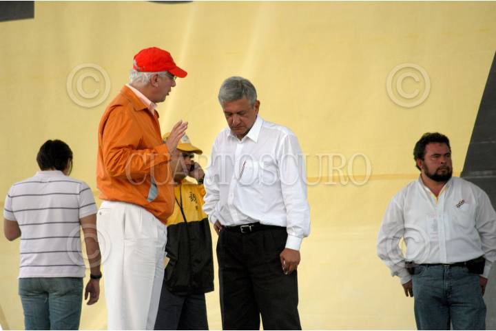 MÉXICO D.F. 30JULIO20006 Andrés Manuel López Obrador, candidato a la presidencia de la república, de la coalición Por el Bien de Todos, después del tercer mitin Informativo en el Zócalo capitalino, dialoga con Nicolas Mollinedo chofer del candidato. FOTO: Guillermo Perea/CUARTOSCURO.COM