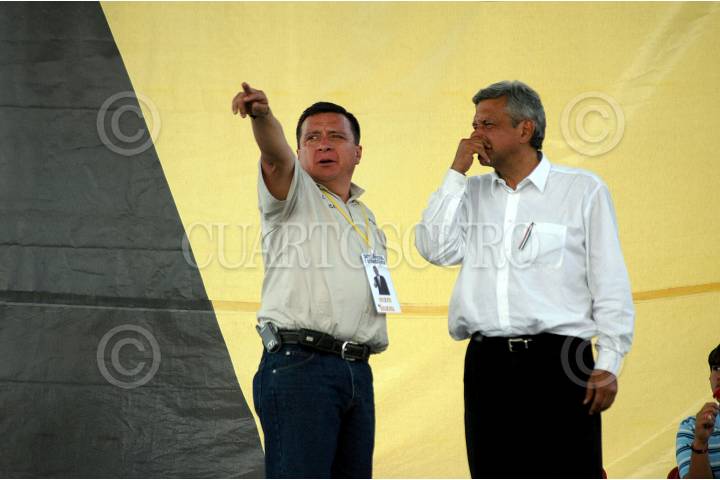 MÉXICO D.F. 30JULIO20006 Andrés Manuel López Obrador, candidato a la presidencia de la república, de la coalición Por el Bien de Todos, después del tercer mitin Informativo en el Zócalo capitalino, dialoga con Nicolas Mollinedo chofer del candidato. FOTO: Guillermo Perea/CUARTOSCURO.COM