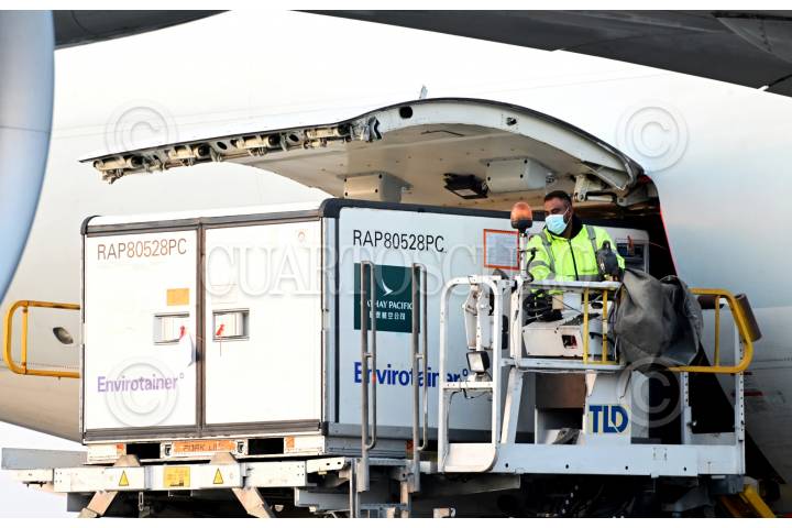 CIUDAD DE MÉXICO, 13MARZO2021.- Esta mañana arribó un millón de dosis de vacunas Sinovac al Aeropuerto Internacional de la Ciudad de México. El evento lo encabezaron Martha Delgado Peralta, subsecretaria de asuntos multilaterales de la SRE; Pedro Zenteno Santaella, director general de Birmex e Iker Amilcar Jiménez Martínez, enlace con China en la Secretaría de Relaciones Exteriores (SRE). FOTO: PRESIDENCIA / CUARTOSCURO.COM