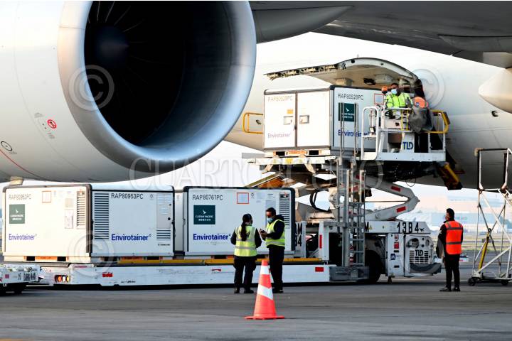 CIUDAD DE MÉXICO, 13MARZO2021.- Esta mañana arribó un millón de dosis de vacunas Sinovac al Aeropuerto Internacional de la Ciudad de México. El evento lo encabezaron Martha Delgado Peralta, subsecretaria de asuntos multilaterales de la SRE; Pedro Zenteno Santaella, director general de Birmex e Iker Amilcar Jiménez Martínez, enlace con China en la Secretaría de Relaciones Exteriores (SRE). FOTO: PRESIDENCIA / CUARTOSCURO.COM