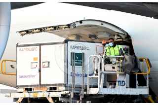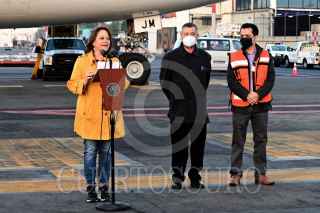 CIUDAD DE MÉXICO, 13MARZO2021.- Esta mañana arribó un millón de dosis de vacunas Sinovac al Aeropuerto Internacional de la Ciudad de México. El evento lo encabezaron Martha Delgado Peralta, subsecretaria de asuntos multilaterales de la SRE; Pedro Zenteno Santaella, director general de Birmex e Iker Amilcar Jiménez Martínez, enlace con China en la Secretaría de Relaciones Exteriores (SRE). FOTO: PRESIDENCIA / CUARTOSCURO.COM