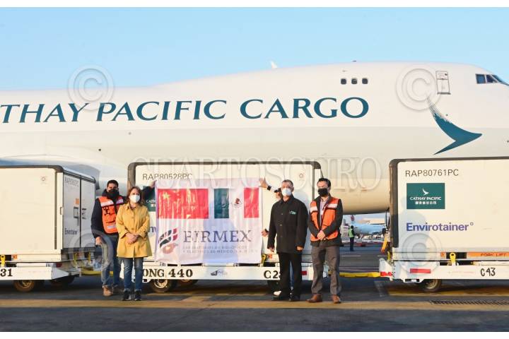 CIUDAD DE MÉXICO, 13MARZO2021.- Esta mañana arribó un millón de dosis de vacunas Sinovac al Aeropuerto Internacional de la Ciudad de México. El evento lo encabezaron Martha Delgado Peralta, subsecretaria de asuntos multilaterales de la SRE; Pedro Zenteno Santaella, director general de Birmex e Iker Amilcar Jiménez Martínez, enlace con China en la Secretaría de Relaciones Exteriores (SRE). FOTO: PRESIDENCIA / CUARTOSCURO.COM