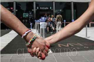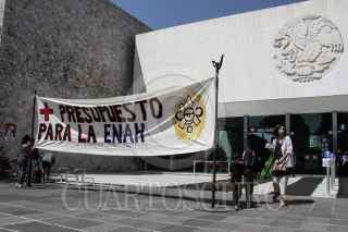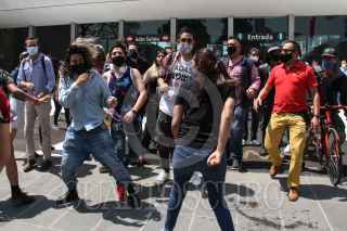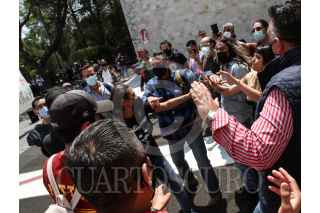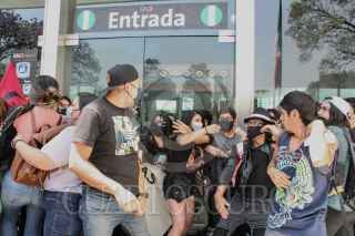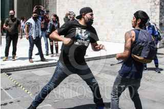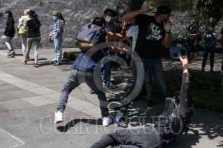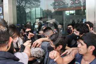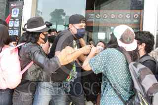 CIUDAD DE MÉXICO, 13MARZO2021.- Decenas de estudiantes y maestros de la Escuela Nacional de Antropología e Historia, realizaron un mitin y evitaron la entrada al Museo Nacional de Antropología e Historia para exigir alto a la cancelación de más de 100 materias optativas, de lenguas y medios audiovisuales, dignificación de la educación pública y alto a la violencia de los derechos laborales. Durante la toma del museo y tras negarle el acceso a un grupo de personas, estás comenzaron a discutir con los estudiantes para después arremeter contra los protestantes con golpes y empujones. FOTO: ROGELIO MORALES /CUARTOSCURO.COM