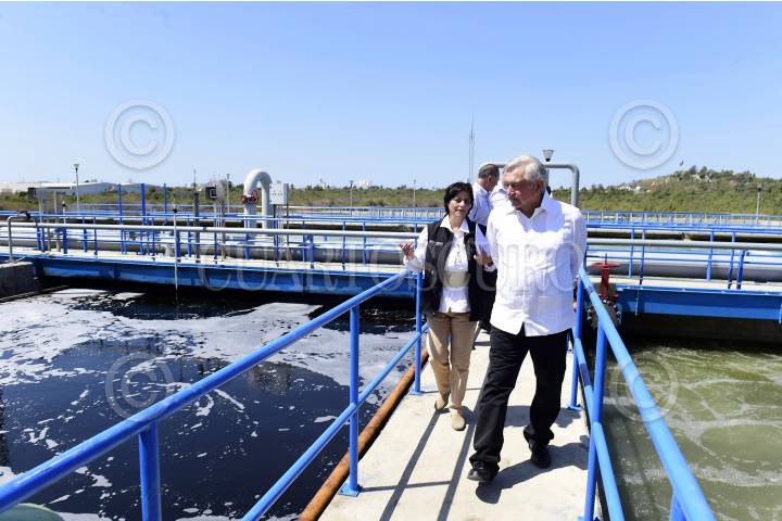 MAZATLÁN, SINALOA, 13MARZO2021.- Andrés Manuel López Obrador, presidente Constitucional de los Estados Unidos Mexicanos, encabezó la entrega de la ampliación y construcción de las plantas de tratamiento Urías I y Urías II, Mazatlán, en la Planta Tratadora de Aguas Residuales Urías II, Mazatlán, Sinaloa. Lo acompañaron Quirino Ordaz Coppel, gobernador Constitucional del Estado de Sinaloa, y Blanca Jiménez Cisneros, directora general de la Comisión Nacional del Agua. FOTO: PRESIDENCIA / CUARTOSCURO.COM