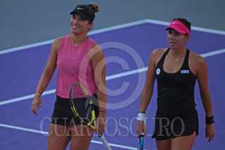ZAPOPAN, JALISCO, 13MARZO2021.- Esta noche en la Final de Dobles del Abierto de Tenis Zapopan 2021 que se lleva a cabo en el Complejo Panamericano de Tenis, se enfrentaron Ellen Perez (AUS) y Astra Sharman (AUS) vs Desirae Krawczyk (USA) y Giuliana Olmos (MEX), en donde al final las Australianas se llevaron la victoria. FOTO. FERNANDO CARRANZA GARCIA / CUARTOSCURO.COM