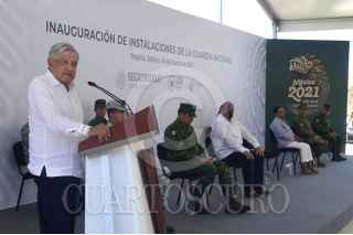 TEQUILA, JALISCO, 14MARZO2021.- Andrés Manuel López Obrador, Presidente de México encabezó la Inauguración de instalaciones de la Guardia Nacional. Lo acompañaron: Enrique Alfaro Ramírez, gobernador del Estado de Jalisco; Rosa Icela Rodríguez Velázquez, Secretaria de Seguridad y Protección Ciudadana; Luis Cresencio Sandoval González, Secretario de la Defensa Nacional; Eduardo Redondo Arámburo, Subsecretario de Marina; Luis Rodríguez Bucio, Comandante de la Guardia Nacional; Arturo Trinidad González, Comandante de la V R.M. y Beatriz Miramontes Rivera, Presidenta Municipal de Tequila, Jalisco. FOTO: PRESIDENCIA/CUARTOSCURO.COM