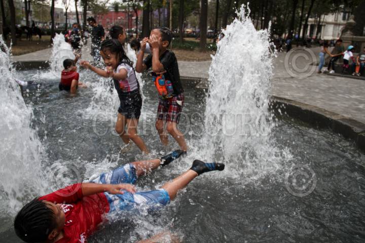 CIUDAD DE MÉXICO, 14MARZO2021.- La ciudad permanece en Semáforo naranja epidemiológico, decenas de familias salen al bosque de Chapultepec y Alameda Central para pasear y jugar en las fuentes durante la tarde calorosa. FOTO: ANDREA MURCIA /CUARTOSCURO.COM