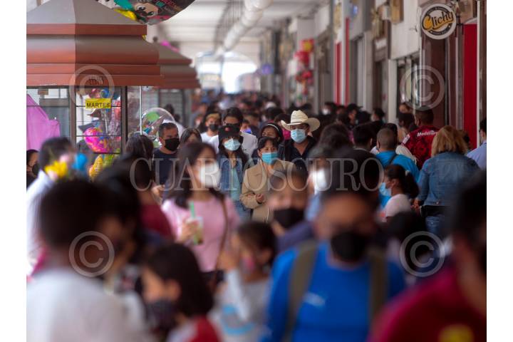 TOLUCA, ESTADO DE MÉXICO, 14MARZO2021.- Fin de semana largo y gente aprovechó para salir a realizar compras o pasear en los Portales de Toluca, el Estado de México continúa en semáforo naranja durante la contingencia por COVID-19 y a partir de este lunes 15 de marzo pequeños negocios, centros comerciales, tiendas departamentales , cines y espacios culturales ampliarán su aforo al 40 por ciento y las instituciones de educación superior y media superior podrán retomar algunas actividades. FOTO: CRISANTA ESPINOSA AGUILAR /CUARTOSCURO.COM