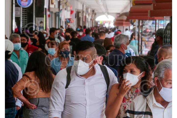 TOLUCA, ESTADO DE MÉXICO, 14MARZO2021.- Fin de semana largo y gente aprovechó para salir a realizar compras o pasear en los Portales de Toluca, el Estado de México continúa en semáforo naranja durante la contingencia por COVID-19 y a partir de este lunes 15 de marzo pequeños negocios, centros comerciales, tiendas departamentales , cines y espacios culturales ampliarán su aforo al 40 por ciento y las instituciones de educación superior y media superior podrán retomar algunas actividades. FOTO: CRISANTA ESPINOSA AGUILAR /CUARTOSCURO.COM