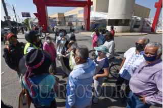 TOLUCA, ESTADO DE MÉXICO, 15MARZO2021.- Personas de la tercera edad acudieron desde temprana hora al Centro de Convenciones de Toluca para poderse aplicar la vacuna contra COVID-19 pero al llegar al centro de vacunación encontraron cerrado y sin personal que les brindara información, molestos algunos se retiraron y otros se quedaron esperando sin saber que la primera fase de vacunación había concluido. FOTO: CRISANTA ESPINOSA AGUILAR /CUARTOSCURO.COM