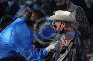 TONALÁ, JALISCO, 15MARZO2021.- Esta mañana en la Unidad Deportiva Miguel Hidalgo dio inicio la vacunación anti Covid-19 a personas de la tercera edad en el municipio, en los próximo 4 días se estarán aplicando 40 mil 950 vacunas contra el coronavirus del biológico Pfizer-BioNTech. FOTO: FERNANDO CARRANZA GARCIA / CUARTOSCURO.COM