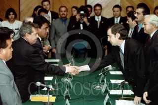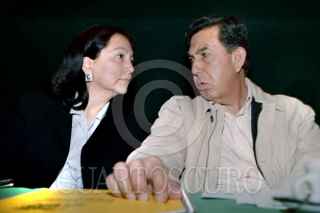 Amalia García presidenta del PRD y Cuauhtémoc Cárdenas candidato presidencial durante el encuentro con la Asociación Nacional de Autoridades Locales de México del PRD.