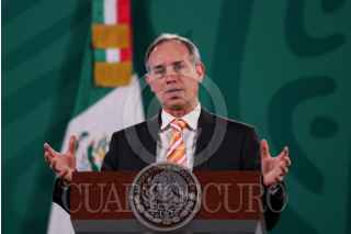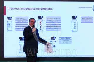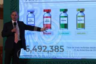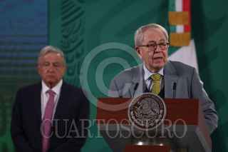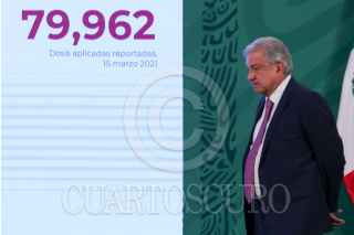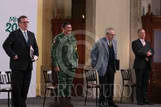 CIUDAD DE MÉXICO, 16MARZO2021.- Andrés Manuel López Obrador, presidente de México, encabezó la conferencia matutina en compañía de Marcelo Ebrard, secretario de Relaciones Exteriores; Jorge Alcocer, secretario de Salud; Hugo López-Gatell, subsecretario de Prevención y Promoción de la Salud, y Luis Cresencio Sandoval, secretario de la Defensa Nacional, presentaron el informe sobre “El Pulso de la Salud”, iniciativa que semanalmente informe el status de la pandemia en nuestros país. Entre los temas destacó el avance en la vacunación a sectores prioritarios, así como las negociaciones previstas para la obtención de nuevas dosis de las farmacéuticas. FOTO: GALO CAÑAS/CUARTOSCURO.COM