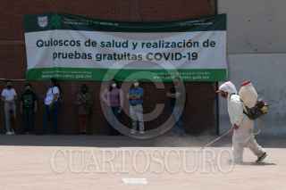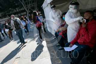CIUDAD DE MÉXICO, 16MARZO2021.- Capitalinos continúan acudiendo a los kioscos de la salud para realizarse la prueba covid-19 durante el semáforo naranja en la capital. Las carpas han tenido una disminución de afluencia en comparación con meses anteriores. Según datos oficiales, nuestro país suma ocho semanas a la baja en casos de Covid-19 y más de 59 mil personas vacunadas. FOTO: GALO CAÑAS/CUARTOSCURO.COM