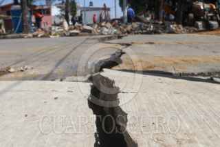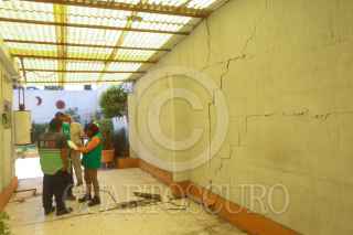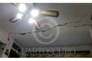CIUDAD DE MÉXICO, 15 MARZO 2021.- Vecinos de la colonia Unidad Habitacional San Juan de Aragón reportaron una grieta de aproximadamente 50 metros de largo que se formó sobre la Quinta Cerrada de la avenida 503, frente al Deportivo Zarco, ubicado en la alcaldía Gustavo A. Madero (GAM). Ellos informaron que empezaron a escuchar ruidos desde las diez de la mañana del día de ayer y que aún se siguen formando grietas en sus hogares. La primera hipótesis que se dio a conocer fue que lo que originó la grieta fue una falla geológica, pero autoridades informaron que la causa fue una fuga de agua que ya se encuentran tratando. Aproximadamente quince casas se encuentran con daños en los patios e interiores de los inmuebles. Francisco Chiguil Figueroa, alcalde de la GAM, acudió a revisar los domicilios afectados en compañía de personal de Protección Civil y elementos de la Policía de la capital. FOTO: GRACIELA LÓPEZ /CUARTOSCURO.COM