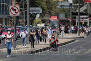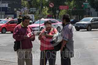 CIUDAD DE MÉXICO, 16MARZO2021.- Débiles visuales que trabajan en el metro vendiendo o cantando bloquearon el cruce de avenida Insurgentes y Reforma para exigirle a la Jefa de Gobierno libertad para poder realizar su actividad con la que sostienen a sus familias, ya que denuncian que constantemente son hostigados por la policía. FOTO: MOISÉS PABLO/CUARTOSCURO.COM