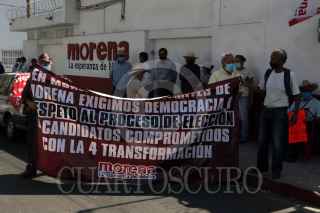 CUERNAVACA, MORELOS, 16MARZO2021.- Militantes que fundaron el Movimiento de Regeneración Nacional en la entidad tomaron las instalaciones del Comité Ejecutivo Estatal en protesta por la alianza electoral con el Partido Encuentro Solidario, también desconocieron al dirigente estatal Gerardo Albarrán y exigieron una mesa de dialogo con el dirigente nacional Mario Delgado, hasta que no ocurra eso seguirán ocupando la sede estatal. FOTO: MARGARITO PÉREZ RETANA /CUARTOSCURO.COM