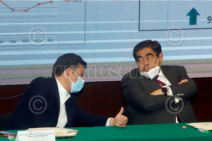 PUEBLA, PUEBLA, 16MARZO2021.- Zoé Robledo, director general del IMSS, y Luis Miguel Barbosa, gobernador de Puebla, acompañaron a la Delegada Estatal de Puebla María Aurora Treviño, en su Primer Informe de Labores. FOTO: MIREYA NOVO/CUARTOSCURO.COM