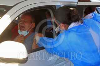 TONALÁ, JALISCO, 16MARZO2021.- El día de ayer dio inicio la jornada de vacunación en el municipio, como parte de las actividades la Universidad de Guadalajara (UDG), se sumó a la jornada de inmunización contra el Covid-19. En el Centro Universitario Tonalá, se encuentra uno de los módulos en el que se implemento la modalidad del Drive Thru con un horario de 17:00 a 21:00 horas. FOTO: FERNANDO CARRANZA GARCIA / CUARTOSCURO.COM
