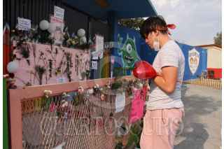 TIZAYUCA, HIDALGO, 16MARZO2021.- Familiares, amigos y comunidad estudiantil colocaron un altar a las afueras del Jardín de Niños Roberto Zéron, en honor y con el objetivo de exigir justicia para la niña Nicole Santos de 7 años de edad, esto luego de su desaparición y posteriormente la confirmación del hallazgo de su cuerpo en la presa El Manantial, en el municipio de Tizayuca, por autoridades de la Procuraduría General de Justicia del Estado. FOTO: ROGELIO MORALES /CUARTOSCURO.COM