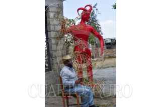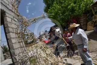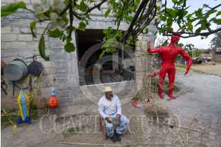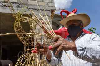 ALMOLOYA DE JUÁREZ, ESTADO DE MÉXICO, 17MARZO2021.- Marcelino Medina Galván, originario de San Mateo Tlachichilpan en Almoloya de Juárez, quien se dedica al campo y a la pirotecnia se encuentra preparando su pieza para poder participar en el concurso de Judas que se realizará el 24 de marzo; una de las actividades que marca la Semana Santa en el Valle de Toluca es el tradicional concurso de Judas, el paseo y posteriormente su quema, a raíz de la pandemia por COVID-19 sufrió modificaciones, no se realiza exposición en el Museo Luis Nishizawa y la quema en la Plaza de los Mártires el Sábado de Gloria. Carrizo, hilo, engrudo, papel, pintura son los materiales que utiliza para elaborar los Judas, él y su familia han participado año con año en este concurso desde que inició hace 28 años, siendo ya cuatro generaciones que se involucran en el trabajo de cada pieza, plasmando los males que aqueja a la humanidad. FOTO: CRISANTA ESPINOSA AGUILAR /CUARTOSCURO.COM