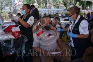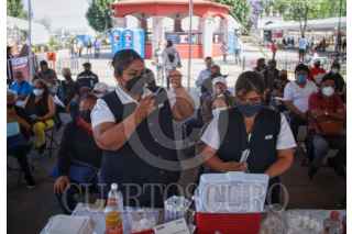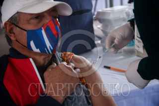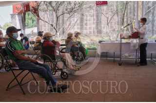 COACALCO, ESTADO DE MÉXICO, 16MARZO2021.- Sin filas, organizados y con un tiempo de espera de 30 minutos arrancó la jornada de vacunación contra COVID-19 en su fase para adulto mayores en la explanada de su Palacio Municipal. Desde temprana hora cientos de adultos mayores acudieron a vacunarse sin contratiempos; en total serán 40 mil dosis las que se aplicarán de SINOVAC. FOTO: ANDREA MURCIA / CUARTOSCURO.COM