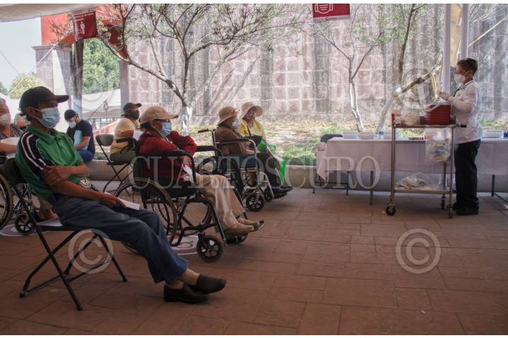 COACALCO, ESTADO DE MÉXICO, 16MARZO2021.- Sin filas, organizados y con un tiempo de espera de 30 minutos arrancó la jornada de vacunación contra COVID-19 en su fase para adulto mayores en la explanada de su Palacio Municipal. Desde temprana hora cientos de adultos mayores acudieron a vacunarse sin contratiempos; en total serán 40 mil dosis las que se aplicarán de SINOVAC. FOTO: ANDREA MURCIA / CUARTOSCURO.COM