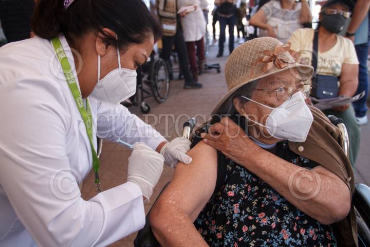 COACALCO, ESTADO DE MÉXICO, 16MARZO2021.- Sin filas, organizados y con un tiempo de espera de 30 minutos arrancó la jornada de vacunación contra COVID-19 en su fase para adulto mayores en la explanada de su Palacio Municipal. Desde temprana hora cientos de adultos mayores acudieron a vacunarse sin contratiempos; en total serán 40 mil dosis las que se aplicarán de SINOVAC. FOTO: ANDREA MURCIA / CUARTOSCURO.COM