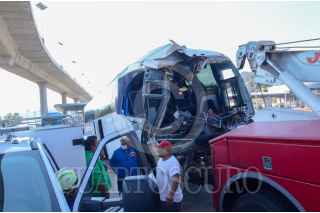 CIUDAD DE MÉXICO, 17MARZO2021.- Un autobús de pasajeros se impactó contra la parte trasera de un tráiler, con saldo de diez personas lesionadas y un deceso. Los hechos ocurrieron en el kilómetro 36 de la autopista México-Cuernava, dirección hacia la ciudad. FOTO: ARMANDO MONROY/CUARTOSCURO.COM