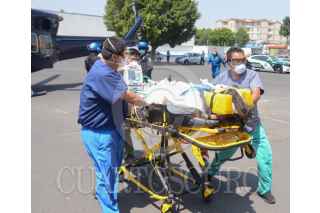 CIUDAD DE MÉXICO, 04MARZO2021.- Trasladan en cóndor de la Secretaría de Seguridad Ciudadana a una menor de 16 años por herida de craneo debido a una caída, esto del Hospital Milpalta al de Legaría, el helicóptero descendió en la comercial de Tacuba. FOTO: ARMANDO MONROY /CUARTOSCURO.COM