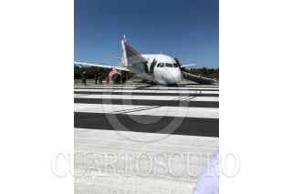 PUERTO VALLARTA, JALISCO, 18MARZO2021.- Un avión de la aerolínea Viva Aerobus, informó que su vuelo VIV4343 con la ruta Puerto Vallarta-Monterrey presentó una falla en el tren de aterrizaje, así mismo dio a conocer que los pasajeros y tripulación resultaron sin lesiones. FOTO: Fotógrafo Especial /CUARTOSCURO.COM