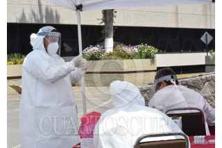 TOLUCA, ESTADO DE MÉXICO, 19MARZO2021.- En la explanada del edificio de la Fiscalía General de Justicia del Estado de México en la ciudad de Toluca se realizan pruebas COVID-19 al personal que labora en esta institución. FOTO: CRISANTA ESPINOSA AGUILAR /CUARTOSCURO.COM