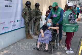 CIUDAD DE MÉXICO, 19MARZO2021.- Sigue en marcha el tercer día de la jornada de vacunación contra Covid-19 para adultos mayores de 60 años en las sedes: Antiguas Instalaciones de la Primera Región Militar y el Internado No. 17 de la SEP, de la alcaldía Venustiano Carranza. El horario de atención es de 8 a 16 horas, para las personas cuyo apellido inicie con las letras F y G. FOTO: MARIO JASSO/CUARTOSCURO.COM