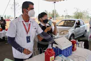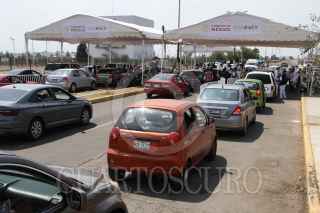 NEZAHUALCÓYOTL, ESTADO DE MÉXICO, 19MARZO2021.- Inició la jornada de vacunación contra COVID-19 en adultos mayores en el estado. Desde tempranas horas decenas de personas acudieron en automóviles a la Ciudad Deportiva Nezahualcóyotl, para recibir la vacuna. Avanzadas la horas la aglomeración de personas y la filas de los carros era interminable para acceder al módulo de salud. FOTO: ROGELIO MORALES /CUARTOSCURO.COM