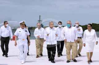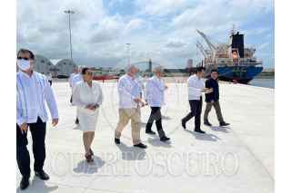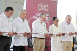 COATZACOALCOS, VERACRUZ, 19MARZO2021.- Andrés Manuel López Obrador, presidente de México, presidió la Inauguración de obras del puerto de Coatzacoalcos, Corredor Interoceánico del Istmo de Tehuantepec, en el Recinto Portuario de la Laguna de Pajaritos. Lo acompañaron Eduardo Redondo Arámburo, subsecretario de Marina; Jesús Ramírez Cuevas, coordinador general de Comunicación Social y vocero del Gobierno de México; Cuitláhuac García Jiménez, gobernador del Estado de Veracruz; Miguel Ángel Sierra Carrasco, director general de la Administración Portuaria Integral de Coatzacoalcos; Herman Leonardo Deutsch Espino, jefe de la Unidad de Infraestructura y transportes del Corredor Interoceánico del Istmo de Tehuantepec(CIIT); Rafael Marín Mollinedo, director general del Corredor Interoceánico del Istmo de Tehuantepec; Rosa Icela Rodríguez Velázquez, secretaria de Seguridad y Protección Ciudadana; Jorge Arganis Díaz Leal, secretario de Comunicaciones y Transportes; Luis Rodríguez Bucio, comandante de la Guardia Nacional; Luis Cresencio Sandoval González, secretario de la Defensa Nacional y Víctor Manuel Carranza Rosaldo, presidente municipal de Coatzacoalcos. FOTO: PRESIDENCIA /CUARTOSCURO.COM