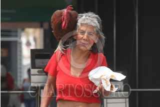 NEZAHUALCÓYOTL, ESTADO DE MÉXICO, 20MARZO2021.- Una mujer en situación vulnerable camina sobre las calles de Nezahualcóyotl con un gallo sobre su hombro. FOTO: ROGELIO MORALES /CUARTOSCURO.COM