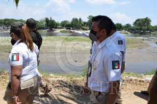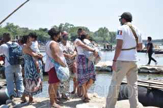 TUXTLA CHICO, CHIAPAS.- Decenas de elementos del Instituto Nacional de Migración llegaron a las márgenes del Río Suchiate, para instalarse en un control migratorio. Los agentes del INM pidieron documentos a las personas y los que no acreditan su estancia regulatoria son regresados. FOTO: DAMIÁN SÁNCHEZ /CUARTOSCURO.COM