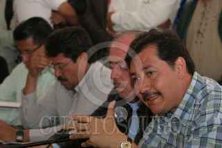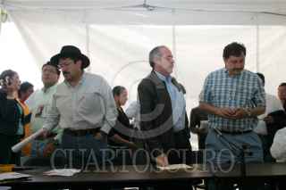 MEXICO, D.F. 01AGOSTO2006.- Leonel Cota Montaño, presidente nacional del PRD durante la conferencia de prensa que ofrecieron integrantes de la coalición Por el Bien de Todos a los medios de comunicación en el plantón que mantienen en el zócalo capitalino. FOTO: Nelly Salas/CUARTOSCURO.COM