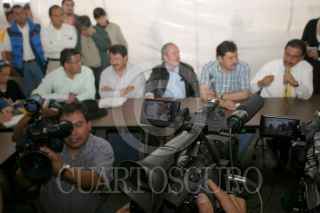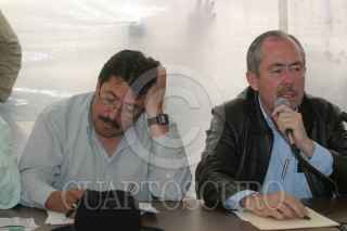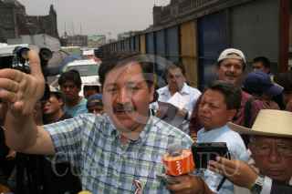 MEXICO, D.F. 01AGOSTO2006.- Nicolas Molinedo, chofer del candidato de la coalición Por el Bien de Todos conversa con Leonel Cota Montaño, presidente Nacional del PRD, en el plantón que mantienen en el zócalo capitalino. FOTO: Nelly Salas/CUARTOSCURO.COM