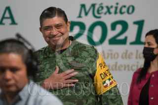 CIUDAD DE MÉXICO. 22MARZO2021.- Andrés Manuel López Obrador, presidente de México, en la conferencia de todas las mañanas, acompañado de integrantes del gabinete de Seguridad, en el salón Tesorería de Palacio Nacional. FOTO: VICTORIA VALTIERRA/CUARTOSCURO.COM
