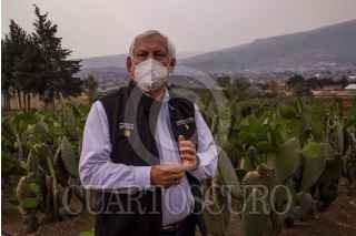 CIUDAD DE MÉXICO, 22MARZO2021.- El secretario de Agricultura y Desarrollo Rural, Víctor Manuel Villalobos Arámbula, sostuvo una reunión de trabajo con productoras y productores de nopal en la alcaldía Milpa Alta. En esta gira de trabajo, Villalobos Arámbula, adelantó que para los productores de la cactácea habrá el acompañamiento de los bienes públicos de la Secretaría para apoyar con innovación, tecnología, sanidad vegetal, prácticas agrícolas sustentables, cadenas de valor e inteligencia de mercados para incentivar su presencia en centrales de abasto y su vinculación con las industrias cosmética, farmacéutica y alimentaria. FOTO: JUAN PABLO ZAMORA/SADER/CUARTOSCURO.COM